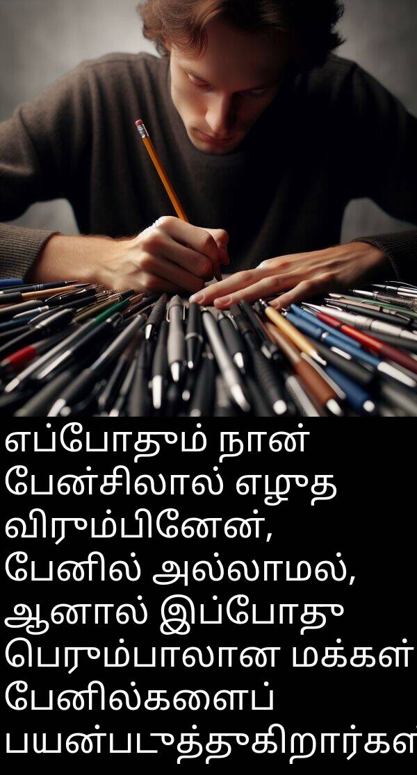 எப்போதும் நான் பேன்சிலால் எழுத விரும்பினேன், பேனில் அல்லாமல், ஆனால் இப்போது பெரும்பாலான மக்கள் பேனில்களைப் பயன்படுத்துகிறார்கள்.