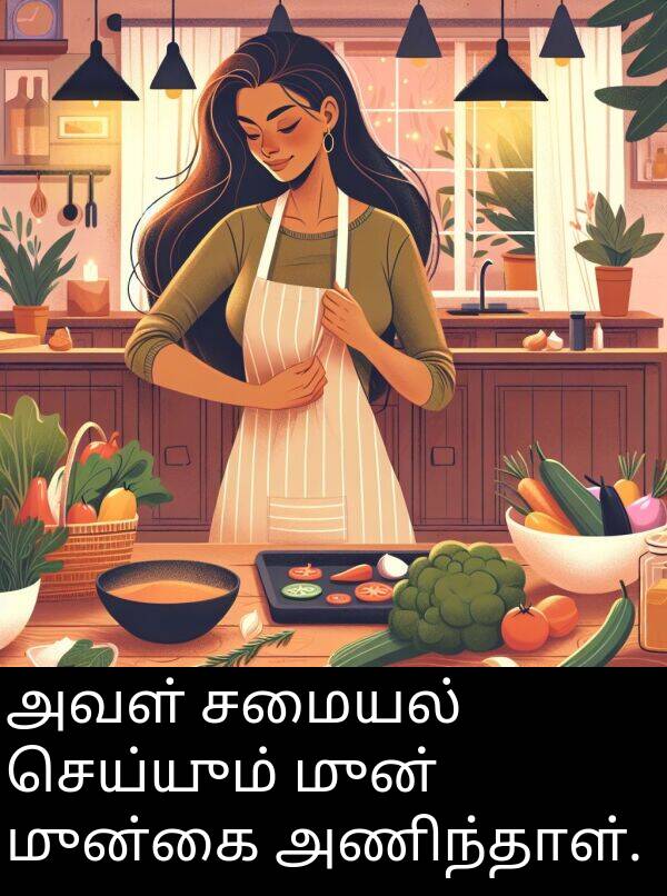 அவள் சமையல் செய்யும் முன் முன்கை அணிந்தாள்.