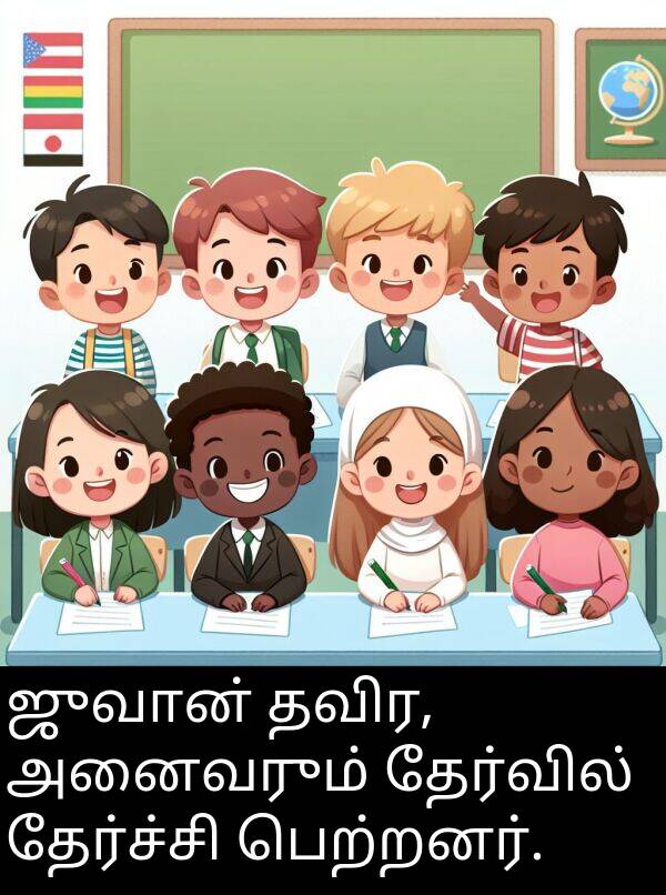 ஜுவான் தவிர, அனைவரும் தேர்வில் தேர்ச்சி பெற்றனர்.