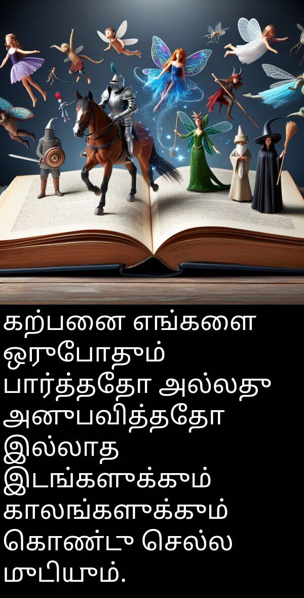 கற்பனை எங்களை ஒருபோதும் பார்த்ததோ அல்லது அனுபவித்ததோ இல்லாத இடங்களுக்கும் காலங்களுக்கும் கொண்டு செல்ல முடியும்.